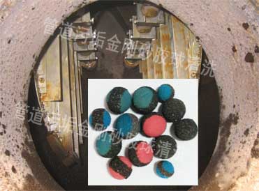 膠球具有一定硬度并富有彈性,膠球的氣孔均勻、孔間連通吸水性強,濕態球的比重與水相近,膠球在進入水室后從水室底部至頂部分層均勻懸浮,從而保證能清洗底部至頂部的每一根冷卻水管。在水溫5-35℃運行時,膠球球徑漲大不超過1mm,且在運行期間保持穩定,以防止膠球堵塞冷卻水管。使用期內不老化,運行中膠球球徑應比凝汽器管子內徑大0.5~1mm。膠球泵有足夠的揚程和流量,泵進口連接管嚴密,以保持膠球正常運行,膠球輸送至凝汽器進口水管逆水方向布置,每根進水管處設置一根注球管以保證膠球在冷凝器水室中的均勻分布。