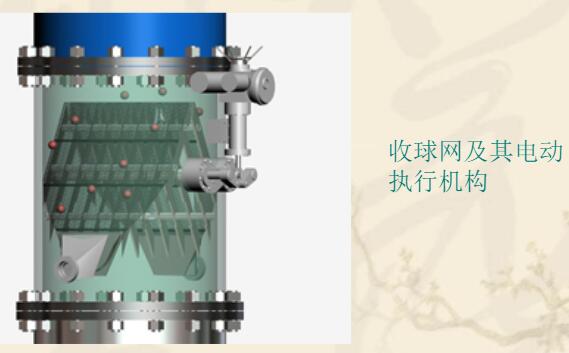 膠球清洗裝置由收球網、裝球室、膠球輸送泵、膠球管路、