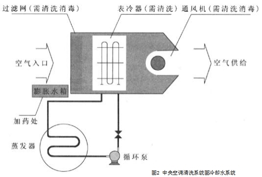 空氣調(diào)節(jié)系統(tǒng)是不容忽視的關(guān)鍵部位見圖245冷凝器系統(tǒng)的清洗范圍冷凝器系統(tǒng)的清洗范圍包括冷卻水系統(tǒng)冷凝器冷卻塔及相關(guān)水管道冷凍水系統(tǒng)蒸發(fā)器風機盤管/表冷器水側(cè)及相關(guān)管道循環(huán)風系統(tǒng)過濾器風機盤管/表冷器風側(cè)。