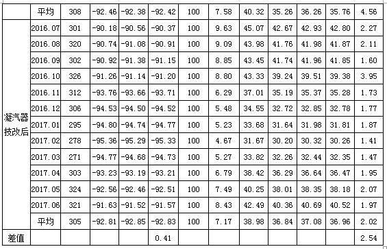 從凝汽器端差統計數據可知,安裝膠球清洗裝置后,#1機組和#2機組凝汽器端差在夏季工況和冬季工況下都得到了很好的保持,較設計值降低2~4℃,較技改前降低2~3℃,且端差保持較好,沒有隨著膠球清洗裝置機組運行時間而出現較大的變化。