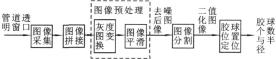 自動(dòng)監(jiān)測(cè)系統(tǒng)示意圖如圖1所示。該系統(tǒng)可以自動(dòng)地監(jiān)測(cè)回收膠球的數(shù)量及其半徑,這樣運(yùn)行人員就可以根據(jù)檢測(cè)結(jié)果適時(shí)地添加或更換膠球,保證膠球的數(shù)量以及質(zhì)量,以期達(dá)到佳的清洗效果。通過(guò)多次試驗(yàn),攝像機(jī)的佳有效位置及其范圍得以確定,并根據(jù)強(qiáng)度承受力和光照特點(diǎn)選擇了合適的材料。本系統(tǒng)硬件配置如圖2所示,其中透明管道材料為鑄造鋼、光學(xué)玻璃,管道內(nèi)側(cè)不同角度裝有頻閃燈,攝像機(jī)拍攝角度垂直于密封玻璃面,拍攝焦距可調(diào)。